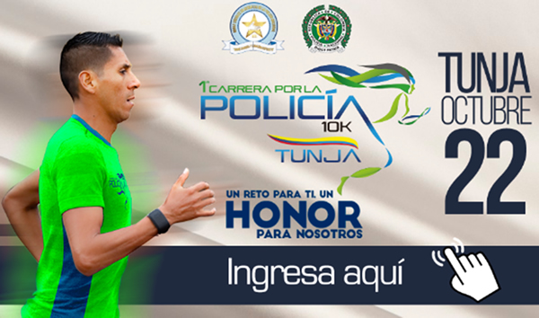 Todos están invitados a correr este 22 de octubre por las calles de la ciudad de Tunja. Más que una carrera atlética, esta es una buena oportunidad de agradecerles a nuestros policías de Colombia, quienes diariamente corren por nosotros para garantizar nuestra seguridad y convivencia.