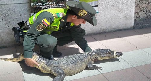 Uniformados adscritos a la Policía Nacional de la Metropolitana de Santa Marta y el grupo Ambiental y Ecológica, lograron la recuperación de un reptil de la especie babilla de nombre científico (Caimán Cocodilus).