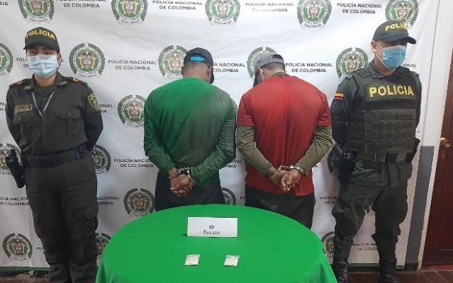 Funcionarios adscritos al cuadrante 17-1 de la estación de Policía Génova, realizan la captura de dos sujetos de 27 y 31  años de edad en la vereda Pedregales de este municipio. Mientras unidades de la Policía Nacional se encontraban realizando labores de patrullaje, intervienen a dos hombres quienes al practicarle un registro a persona,  les hallan en su poder una bolsa plástica con base de coca. Por consiguiente se les dan a conocer sus derechos como personas capturadas, siendo dejados a disposición de autoridad competente para que responda por el delito de tráfico fabricación o porte de estupefacientes.