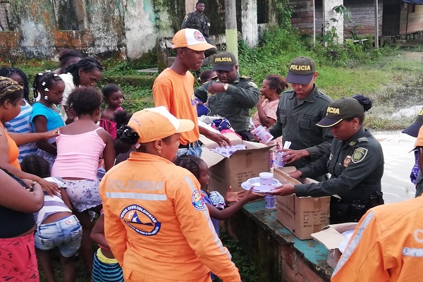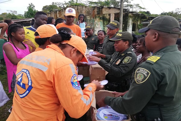 La Policía Nacional en compañía de la defensa civil visitó a las familias damnificada con el fin de medir la magnitud de las afectaciones y les hizo la entrega de donaciones de alimentos, elementos de aseo y prendas de vestir.