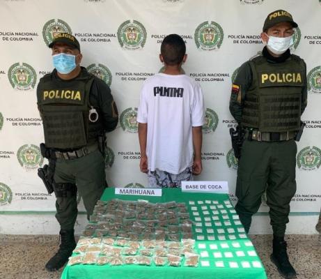 Mediante planes de disuasión y control en el barrio Pablo VI, se le hace un registro a persona al adolescente encontrándole en su poder una bolsa negra y en su interior 100 dosis de marihuana y 50 dosis de base de coca.