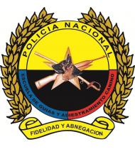 La circunferencia central en fondo amarillo, llevará elaborados de dentro hacia afuera y centrados en color dorado, la silueta de la estrella de la Policía Nacional, luego cruzadas en equis una carabina y un sable y por último la cabeza del perro Pastor Alemán, mirando hacia el lado derecho del escudo; todos estos elementos en alto relieve, estas circunferencias irán coronadas exteriormente por dos ramos de laurel y, en la parte inferior, una divisa de extremos enrollados hacia atrás, con la inscripción en letras color negro que digan “FIDELIDAD ABNEGACIÓN”, en alto relieve sobre un fondo dorado, que significan la fidelidad del perro hacia su guía y la abnegación del guía hacia el perro.