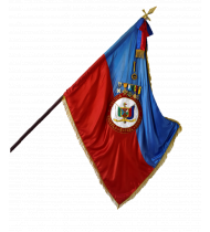 La longitud del estandarte es de 2.00 mts de largo por 1.20 de ancho, está conformada por dos franjas horizontales, cada una de 0.60 mts de ancho, la superior es de color azul y la inferior de color rojo. El azul significa identidad de propósitos, la ecuanimidad y la idoneidad profesional, que se une a la franja roja para interpretar la decisión de llegar hasta el sacrificio con el derramamiento de la propia sangre si es necesario, en defensa del lema del instituto “INTEGRIDAD Y ORDEN”. Además, el recordar el otro significado de los dos últimos colores del Pabellón Nacional, que simbolizan el cielo y las aguas del Mar Caribe, las ciénagas y lagos, como región lacustre de la patria, en que para lograr su libertad e independencia, fue necesario el holocausto de los ancestros libertadores y hacedores de la nacionalidad, al crearse la República. También se considera que es tributo a la bandera Nacional.