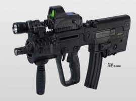 Fusil Tavor de calibre 5,56, arma de apoyo de largo alcance, de fácil transporte, maniobra diurna y nocturna gracias a su conjunto de miras, con mayor poder de fuego especial para combate urbano y rural.