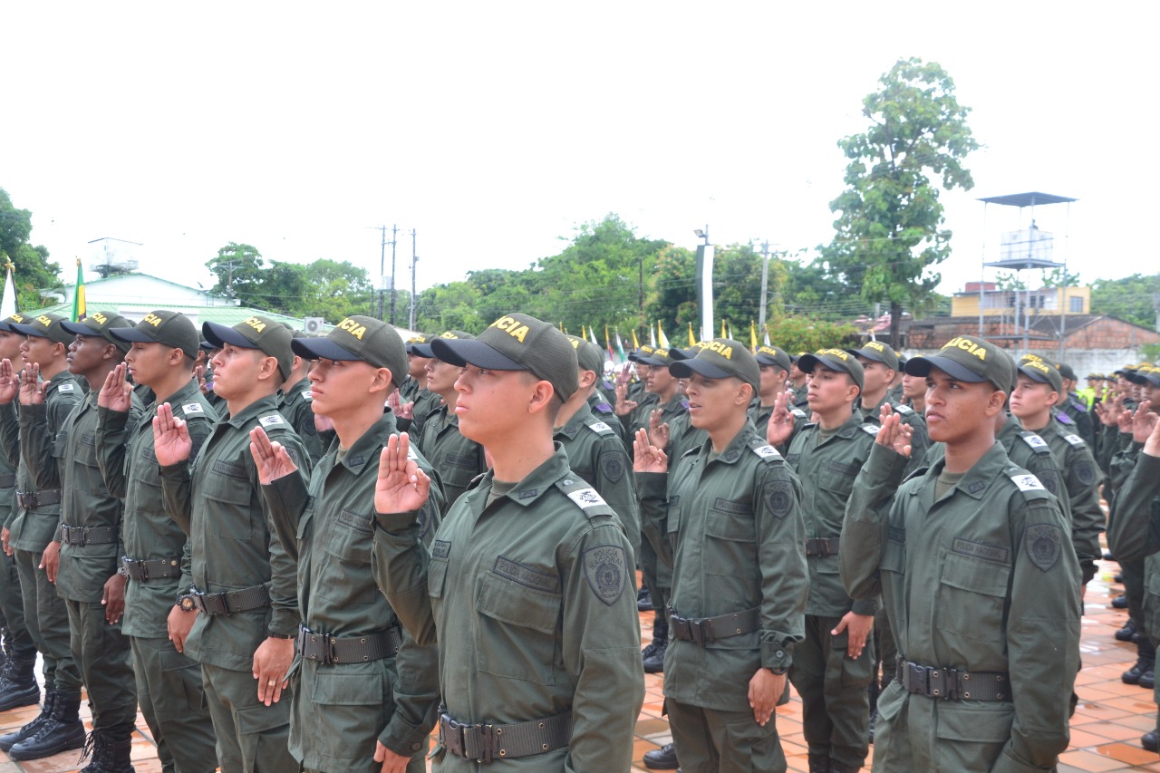 En la Escuela de Policía Gabriel González López, 332 jóvenes Auxiliares de Policía pertenecientes a la ESGON Y CENOP juraron ante Dios y la Patria garantizar el bien de la libertad y la justicia.