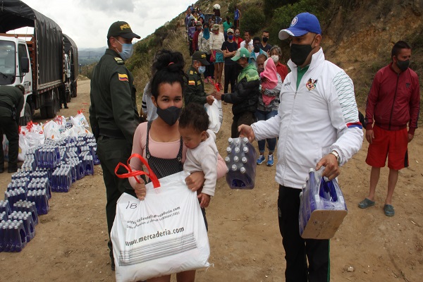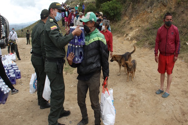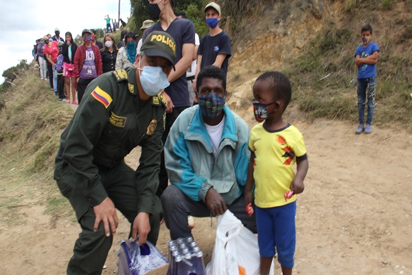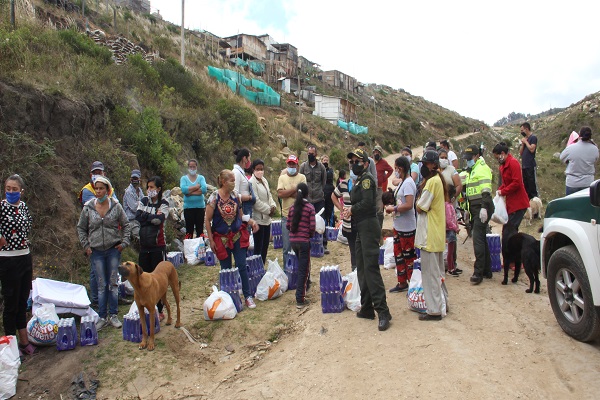 Bajo este contexto, la Dirección de la Escuela de Suboficiales y Nivel Ejecutivo “Gonzalo Jiménez de Quesada” y el curso 005 de la Reserva de la Policía Nacional se solidarizaron con esta población, desarrollando una actividad psicosocial dirigida a 100 familias de Piedras Blancas de este municipio que se encuentran en situación de vulnerabilidad debido a pandemia del COVID-19, a través de la entrega de ayudas (productos no perecederos), con la participación y el apoyo de un personal de planta uniformado y no uniformado que hace parte de este centro docente quienes repartieron estas ayudas con amor en esta época de crisis económica.