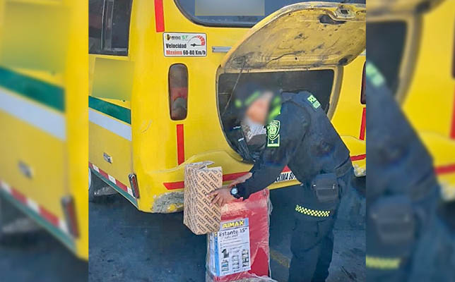 Durante estas acciones de control, la Policía Metropolitana de Popayán logró hallar 27 envolturas rectangulares bajo la modalidad tipo caleta en el portaequipaje de un bus de servicio público que cubría la ruta Popayán, Cauca – La Plata, Huila.