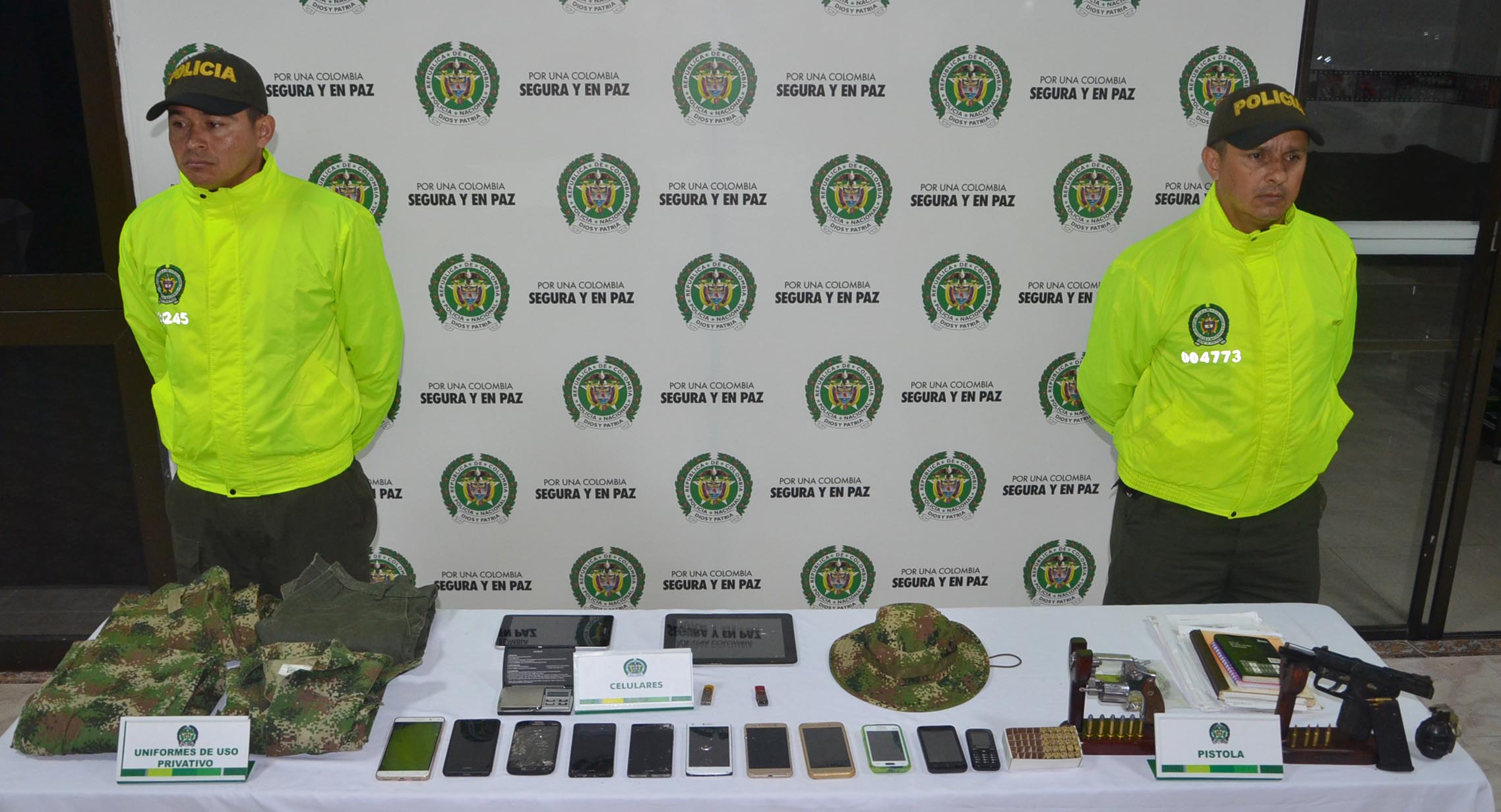 En la acción también se logró la incautación de una pistola Five Seven, un revolver, una granada, 60 cartuchos de diferente calibre, un proveedor, 12 celulares, cuatro dispositivos electrónicos y dos uniformes militares.