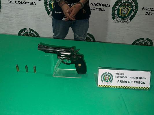 Esta acción policial la desarrollaron los uniformados del cuadrante 28 adscritos al CAI Alpes quienes mediante planes de prevención y control en el barrio Versalles, logran la captura de "Cabezon", quien al practicarle un registro se le encuentra en su poder un arma de fuego tipo revólver marca Llama Scorpio Calibre 38 mm, con 03 cartuchos para la misma.