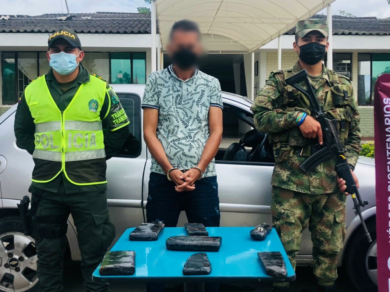 La captura se da en la vía Popayán- La Portada km 97+300 sector conocido como Palo quemado jurisdicción del municipio de Isnos, donde nuestros uniformados de la Seccional de Tránsito y Transporte junto con unidades del Batallón Infantería No. 27 Magdalena, detienen un vehículo tipo automóvil el cual era conducido por un hombre de 53 años de edad, el cual actuaba de manera sospechosa, lo que encendió las alarmas en los uniformados que realizaban el registro minucioso del vehículo, encontrando una caleta en el capó, donde fueron hallados siete paquetes de marihuana con un peso de 2.300 gramos.