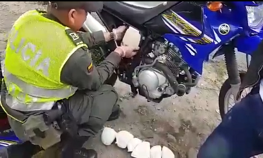 Capturado transportando base de coca encaletada en su maleta y en la motocicleta