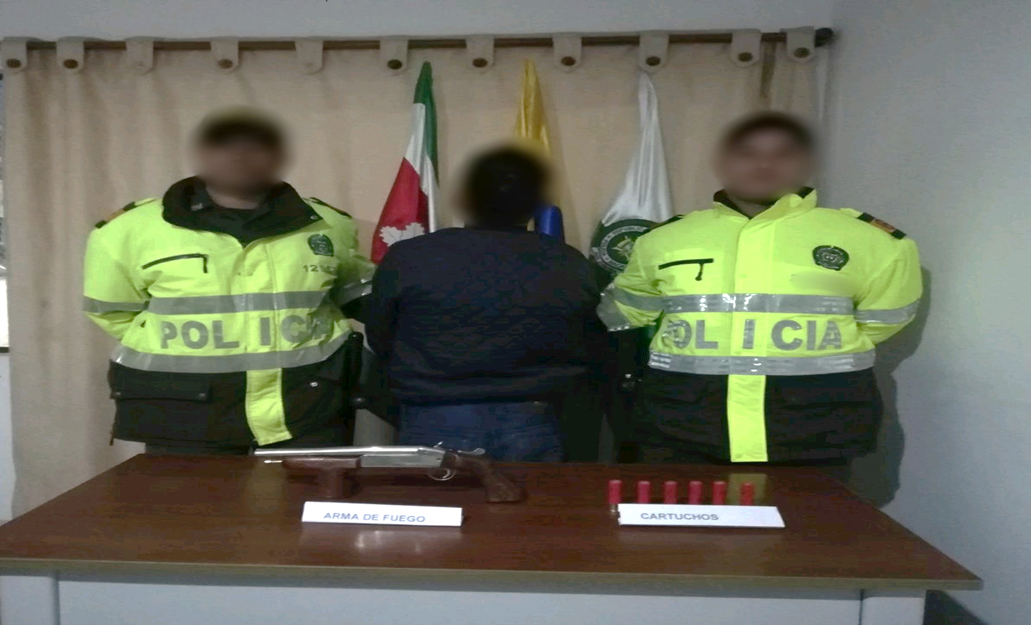 Así mismo, funcionarios de la Policía Nacional realizan la captura de un hombre de 49 años edad, en la vereda Cañon Bajo del municipio de Sutamarchán, por hallar en su poder un arma de fuego tipo escopeta recortada, calibre 16 y 06 cartuchos para la misma, sin los documentos que acreditaran su legalidad y procedencia.