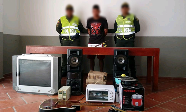 Este joven ingresó a una residencia aprovechando que el inmueble se encontraba solo, logró hurtar un televisor, un mini componente, un micro hondas y una guitarra. Es preciso mencionar que los electrodomésticos hurtados fueron recuperados y entregados a su propietaria.