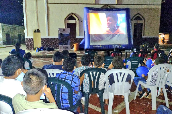 Durante esta bonita labor, se proyectó una película educativa para los nuños y la comunidad en general, los participantes disfrutaron de un buen cine totalmente gratis y en pantalla gigante, en el cual, no solamente participaron los niños, niñas y adolescentes sino también el núcleo familiar, acompañado de un refrigerio y recreación.