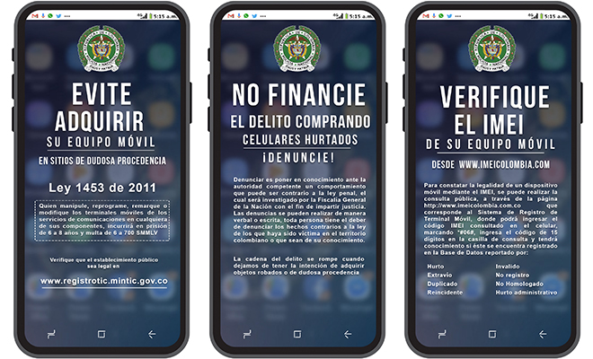 Es así que, a la entrada de todas las unidades policiales estarán a la mano de la comunidad las instrucciones para que verifiquen sus celulares a través del IMEI, el cual por regla general se encuentra debajo de la batería y está formado por 15 dígitos o pueden consultarlo al *#06# y la tecla de llamada.