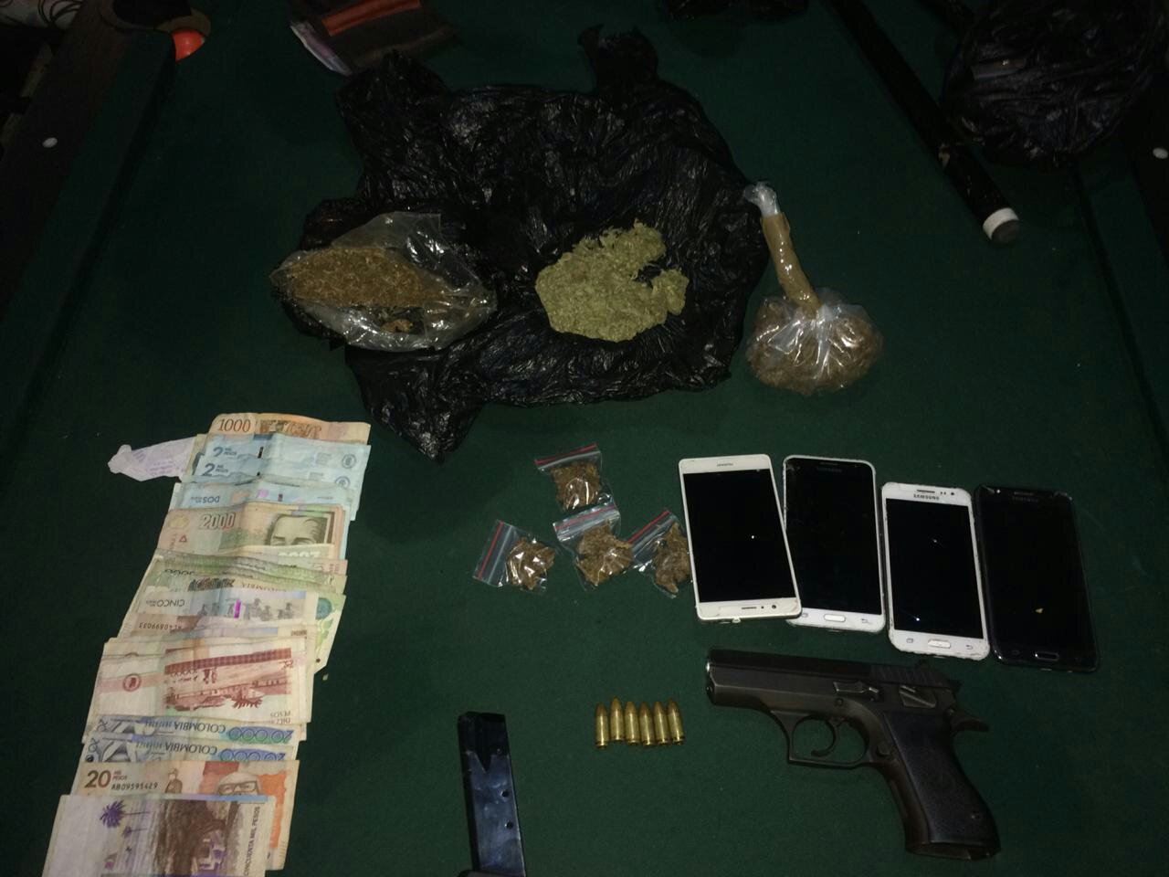 Aunado a lo anterior en los registros de allanamiento se logró incautar: un vehículo Mazda,una motocicleta, pistola marca Jericó calibre 9mm,un kilo de marihuana tipo cripy, 04 celulares de alta Gama y 298.000 mil pesos en efectivo.