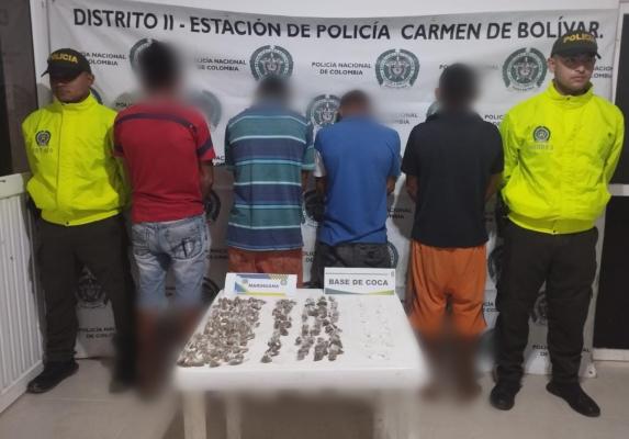 Estas personas fueron dejadas a disposición de la Fiscalía General de la Nación por el delito de tráfico, fabricación o porte de estupefacientes.