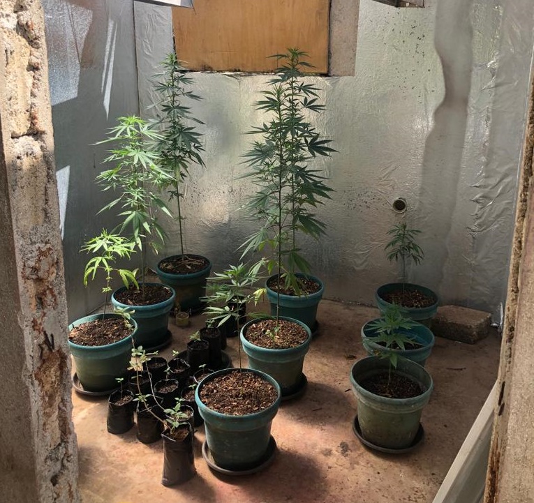 Durante el registro, el ciudadano alterado intenta emprender la huida por el lote baldío sin éxito, logrando ser interceptado por los uniformados. Al reducirlo los policiales descubren al interior terreno un invernadero completamente adecuado con sistema de iluminación permanente, abonos, plaguicidas y 31 plantas de marihuana distribuidas en materas y otras listas para ser trasplantadas.