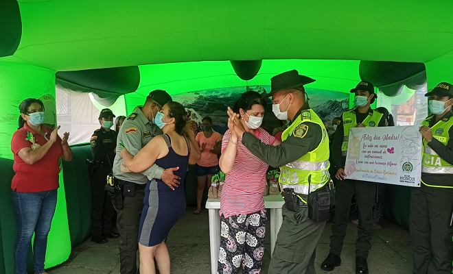 El Departamento de Policía Santander a través de toda la oferta institucional, realizó una caravana por diferentes municipios del departamento, donde llegaron hasta los hogares y lugares de trabajo de las madres santandereanas, con el fin de tener un detalle con este ser tan importante para nuestras vidas y no pasar por alto tan importante fecha como lo es el día de las madres.