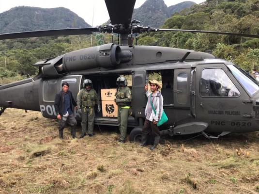 En coordinación con el Ministerio de Ambiente y Desarrollo Sostenible, en las últimas horas una tripulación conformada por pilotos de la Policía Nacional de Colombia, dos veterinarios y funcionarios de Corpoboyacá, llevaron a cabo el traslado de ‘Pensilvania’, una osa andina (tremarctos omatus) la cual se encontraba en recuperación luego de ser rescatada el pasado 31 de enero de 2020 en Moniquirá (Boyacá) y llevada al Centro de Rehabilitación de Osos “Santuario del Oso Andino“ por presentar deshidratación, daños dentales y desnutrición.