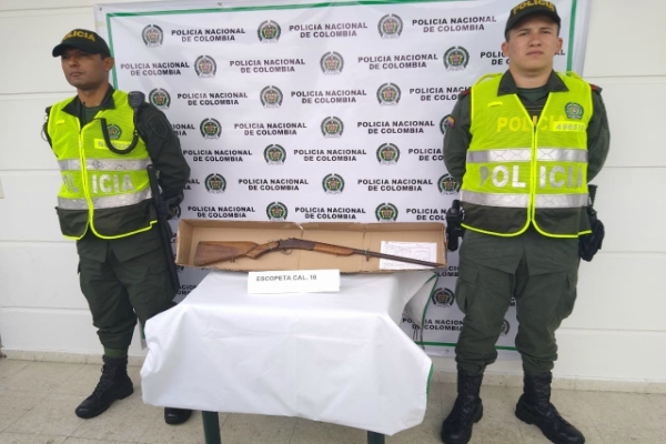 En desarrollo a los diferentes planes y controles realizados en las vías del departamento, la Policía Tolima se permite informar que siendo aproximadamente las 06:30 de la tarde, momentos en que personal del cuadrante realizaban patrullajes de rutina a las afueras del municipio de Casabianca, por información de integrantes de la red de participación cívica, en una zanja al costado de la vía se halló abandonada un arma de fuego tipo escopeta calibre 12 milímetros, según versiones de la comunidad fue abandonada por un sujeto quien desde una larga distancia al notar la presencia policial emprende la huida por la zona boscosa.