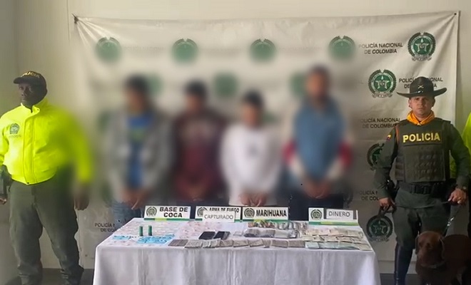 Estas acciones ilegales y rentas criminales eran lideradas por quien se hace llamar en el mundo del crimen como ‘Valentin’ de 24 años de edad, quien coordinaba a los demás integrantes del grupo delincuencial común organizado. En las acciones oficiales también fueron capturados otros tres hombres de 27, 29 y 34 años de edad, quienes cumplían el papel de ‘campaneros’ dando aviso ante la presencia de las autoridades en la zona y así poder camuflar la droga. Todos eran requeridos mediante orden judicial por el delito de concierto para delinquir con fines de tráfico, fabricación o porte de estupefacientes. Igualmente, en flagrancia por el delito de tráfico de estupefacientes fue capturada una quinta persona en el municipio de Itagüí.