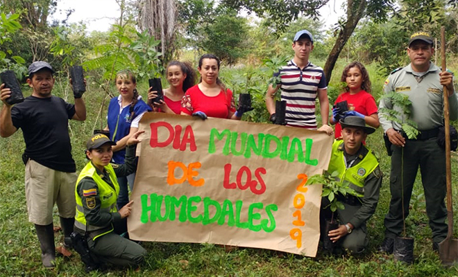 El Departamento de Policía Meta “Más cerca del ciudadano”, continúa desarrollando actividades en conmemoración del día internacional de los humedales. “Son los pulmones del planeta, allí habitan un sin número de especies y prolifera el recurso hídrico, por eso, ‘nuestro compromiso es protegerlos’”, indicó el señor coronel Nicolás Alejandro Zapata Restrepo, Comandante Departamento de Policía Meta.