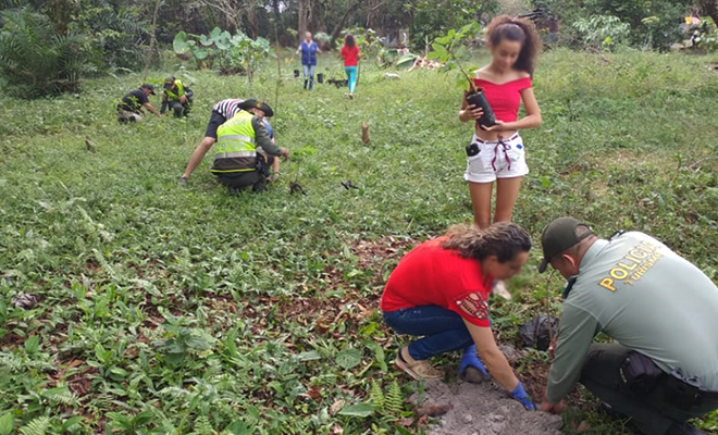 Es así que, en la ronda del caño Arenas Blancas, ubicado en la vereda Morichal del municipio de Cubarral, nuestras unidades de protección ambiental y ecológica y prevención en coordinación con la junta de acción comunal, llevaron a cabo la reforestación de 40 árboles de diferentes especies y una jornada de limpieza, contribuyendo de esta manera a evitar la erosión, mantener limpio el entorno y mejorar el paisaje.