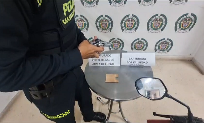 Los capturados, el arma de fuego y la motocicleta, fueron puestos a disposición de la Fiscalía General de la Nación por los delitos de porte ilegal de armas de fuego y falsedad marcaria.