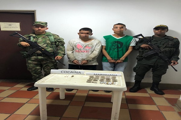 La operación Policial y militar se desarrolló en el perímetro urbano de este municipio, los capturados de 18 Y 19 años respectivamente son conocidos como “Diego” y “Julio”, a quienes se les halló 85 gramos de estupefaciente entre marihuana y base de coca que se encontraban listos para ser distribuidos en diferentes dosis.