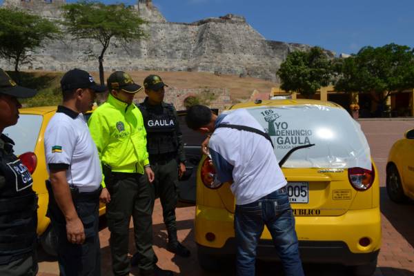 El monumento de las Botas Viejas, detrás del Castillo San Felipe fue el punto de encuentro para que más de veinte taxistas se vincularan a la campaña ´Yo no pago. Yo denuncio´, desplegada por unidades del Gaula contra los delitos de secuestro y extorsión.