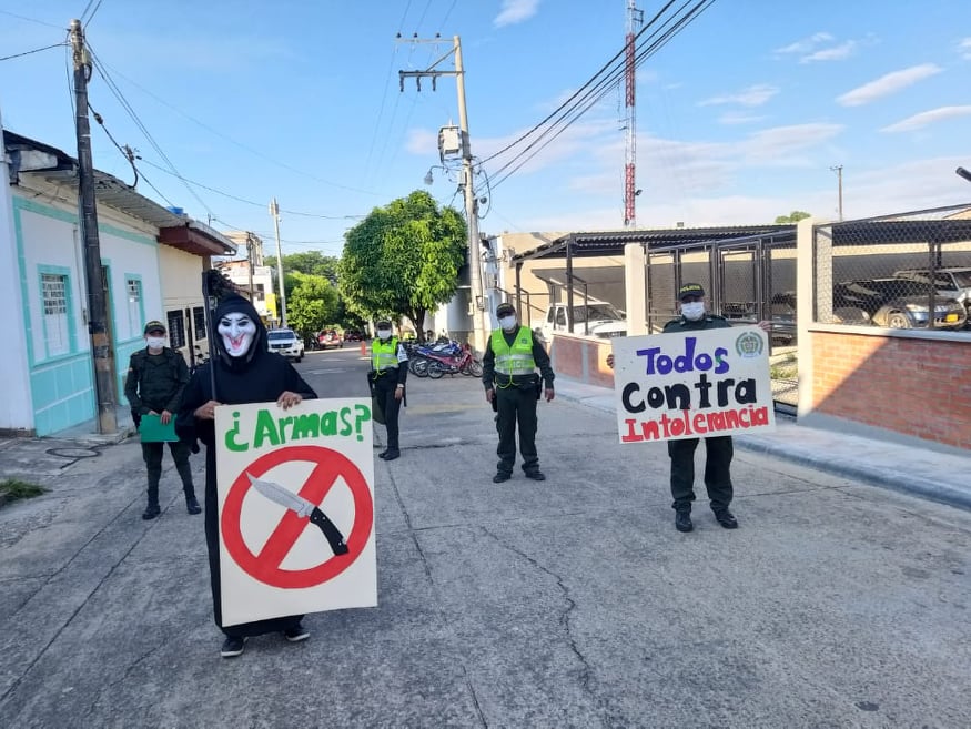 Con el fin de continuar llegando a diferentes municipios y veredas del departamento con actividades de educativas y de prevención, la Policía Tolima en cabeza de señor Coronel Rodolfo Carrero Villamil, a esta hora realiza en el municipio de Chaparral una fuerte intervención en los barrios del municipio, con personal del grupo de prevención y educación ciudadana, protección a la infancia y adolescencia, personal de los cuadrantes y uniformados de la unidad Policial para la edificación de la Paz implementando una campaña pedagógica y educativa denominada ‘Todos contra la Intolerancia’, esto con el fin de llegar a las comunidades, con el objetivo de socializar una obra de teatro y exposición de pendones los cuales ayudan a educar a la ciudadanía para tomar conciencia y evitar así las lesiones personales y demás infracciones que en la actualidad componen un delito de carácter gravé.
