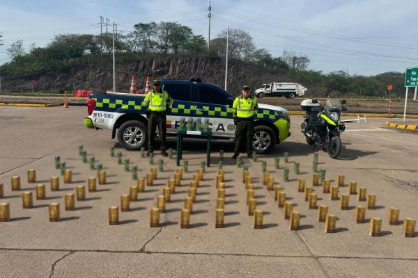 El procedimiento se llevó a cabo en el sector Río Ariguaní, kilómetro 2+00, donde los uniformados realizaron la inspección a un vehículo tipo bus de servicio público que cubría la ruta Santa Marta – Medellín.