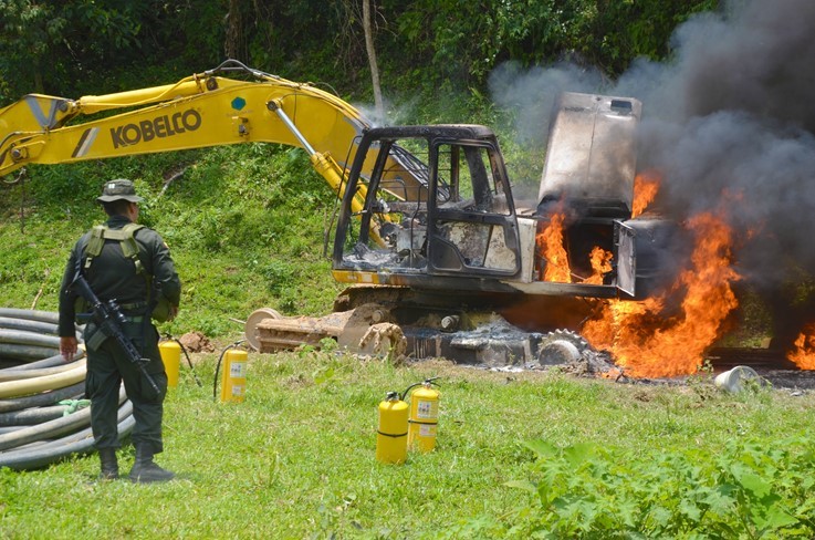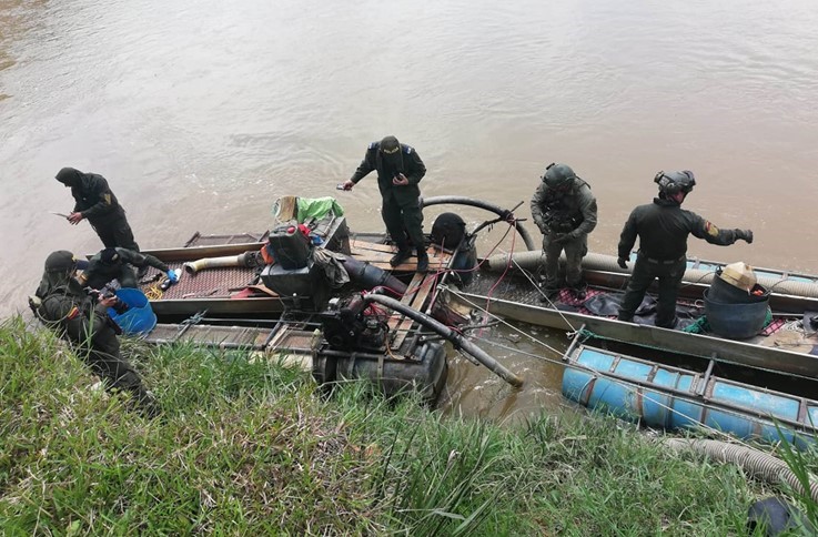 Estos esfuerzos interinstitucionales se dan en el marco de la Política de Seguridad y Defensa, ejecutando acciones operativas tendientes a neutralizar y controlar estas prácticas ilegales, que ocasionan el daño a los recursos naturales por medio de la minería criminal, destrucción de la flora y la fauna y la contaminación de fuentes hídricas con desechos estériles mineros.