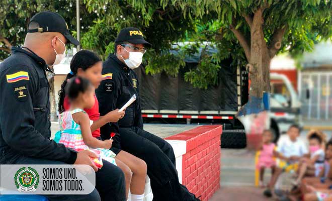 Los integrantes del Escuadrón Móvil Antidisturbios No 21 DECES, llegaron al parque de la Ciudadela 450 años, ubicada en el perímetro urbano de la ciudad de Valledupar, con el propósito de compartir con los niños habitantes de este sector complejo de la ciudad y llevar un mensaje institucional cargado de entusiasmo, esperanza y ánimo para cada a niño, invitándolos a no dejar de soñar y convertirlos metas, trabajando con perseverancia, compromiso y dedicación por alcánzalas, independiente del marco social en el que desarrollan sus vidas.