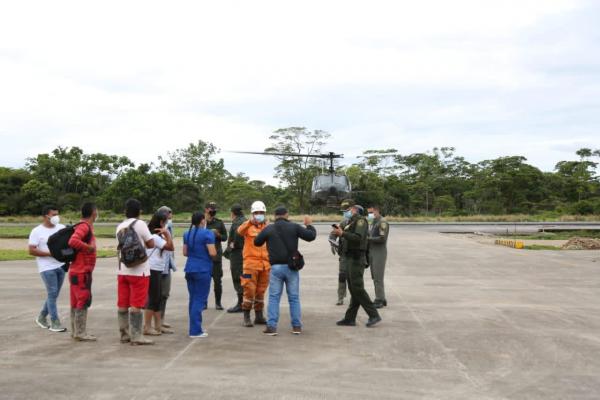 Una tripulación especial asistió a los ciudadanos y una vez la aeronave aterrizó en la Base Antinarcóticos de Villa Garzón, la familia fue trasladada en una ambulancia hacia el hospital San Gabriel Arcángel donde fueron valorados por un médico internista, posteriormente las autoridades municipales atendieron a los damnificados.