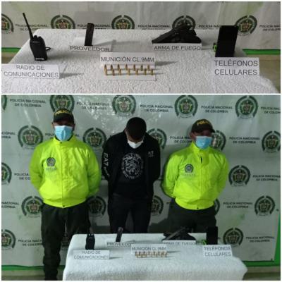 Según investigaciones adelantadas por las autoridades, este sujeto haría parte de la RAE-R Franco Benavides, con injerencia en el corregimiento de Restrepo, y fue capturado por el delito de fabricación, tráfico o porte de armas de fuego o municiones y puesto a disposición de la Fiscalía 25 Local de Policarpa.