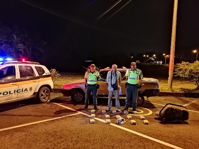 Por otro lado, mediante controles realizados en los principales ejes viales del área metropolitana de Pereira, en el kilómetro 86 vía Andalucía sector “Y” de Cerritos, funcionarios de la seccional de tránsito y transporte, logran la captura de un hombre de 65 años, natural de Bolívar Cauca, quien transportaba 8 kilos de marihuana, distribuidos en 15 paquetes, los cuales eran transportados en una caleta al interior del tanque de combustible de un vehículo tipo automóvil, marca Renault R9, el cual cubría la ruta de Bolívar (Cauca) a la ciudad de Pereira.