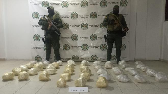 En el marco de la estrategia institucional contra el narcotráfico, mediante labores de patrullajes y puestos de control, integrantes del Modelo Nacional de Vigilancia Comunitaria por cuadrantes (MNVCC) y unidades del Grupo de Operaciones Especiales (GOES), sobre la vía que del Corregimiento de Pizanda conduce al municipio de Policarpa, logran la incautación de 95 kilos de base de coca.