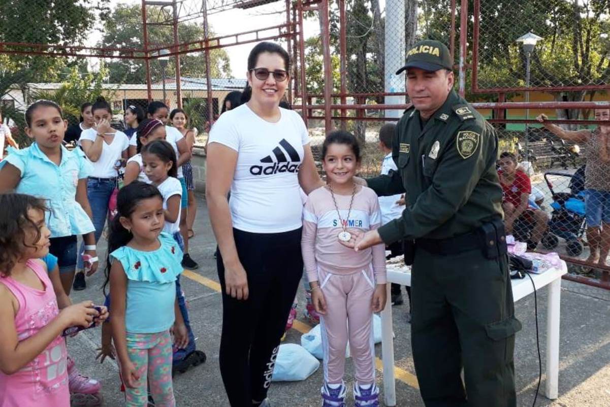 En el marco de la estrategia “Policía Más Cerca del Ciudadano”, el Departamento de Policía Cesar, a través del personal adscrito a la Subestación Los Ángeles, realiza un torneo infantil femenino de patinaje, del cual participaron más de 20 niñas de esta localidad.