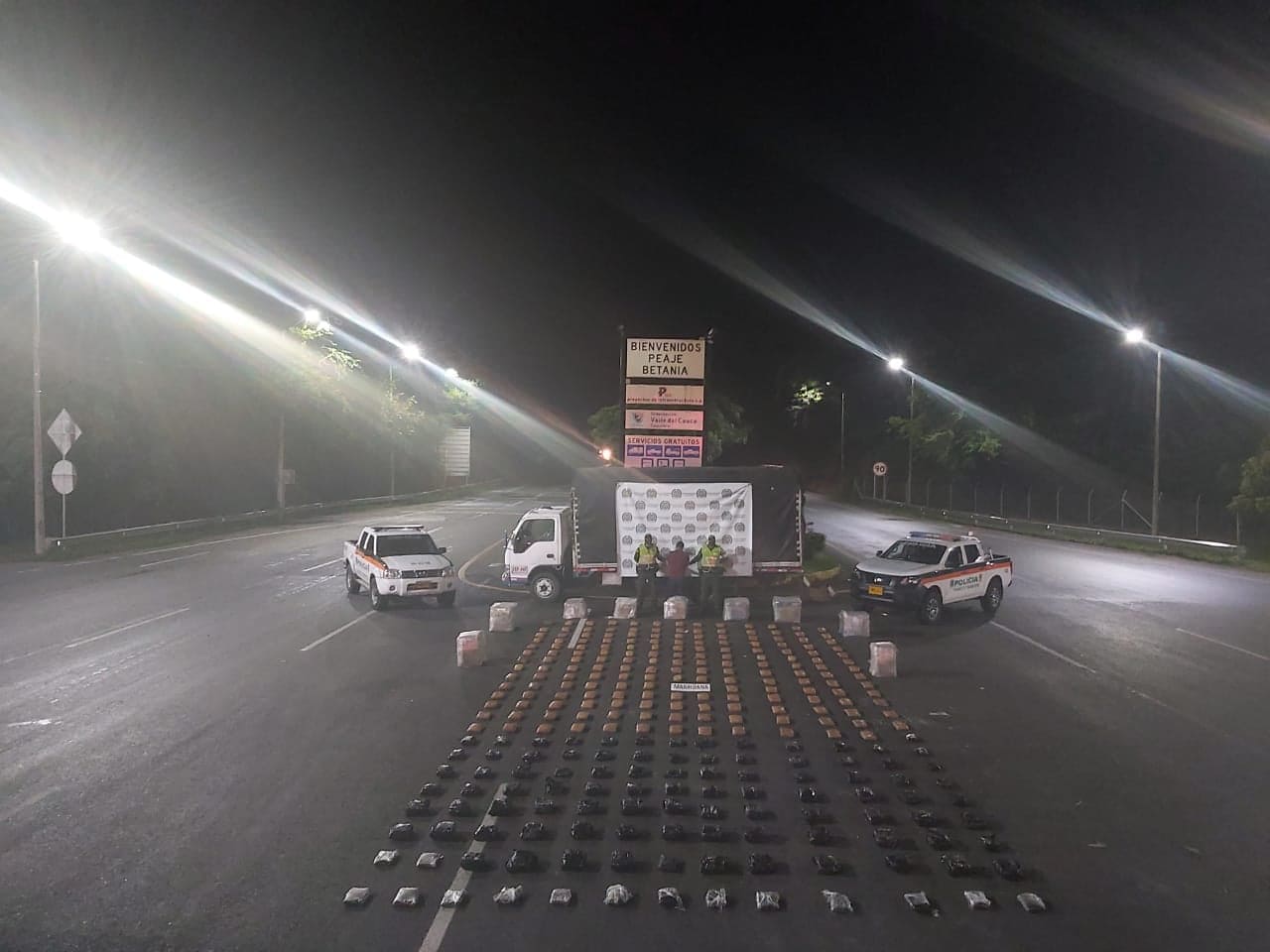Fue así como mediante un control vial ubicado en la vía Cali – Andalucía, jurisdicción del municipio de San Pedro, se logró capturar un hombre e incautar 700 kilos de marihuana tipo creppy, avaluados en más de 500 millones, transportados en un camión de servicio público, simulando transportar madera (láminas de triples) y elementos de aseo.