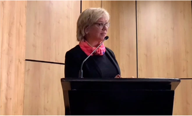 Cristina Hoyos, jefe de América Latina y el Caribe del Centro de Ginebra para la Gobernanza del Sector Seguridad (DCAF), destacó a la Policía Nacional de Colombia como un “referente” en temas como el enfoque de género y su contribución a la edificación de la paz en nuestro país. Lo dijo durante su intervención en el marco de la ceremonia de conmemoración del 5.° aniversario de la Unidad Policial para la Edificación de la Paz (UNIPEP), que tuvo lugar este miércoles 10 de noviembre en el Centro Social de Agentes y Patrulleros (CESAP) de Bogotá.
