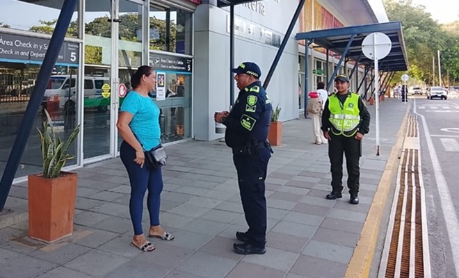 La Policía Nacional en Montería, a través del Grupo de Protección al Turismo y Patrimonio Nacional, continúa adelantando campañas de prevención en el marco de la estrategia Turismo Seguro, desarrolladas en el aeropuerto Los Garzones de la ciudad, con el propósito de fortalecer la seguridad y la convivencia entre propios y visitantes.