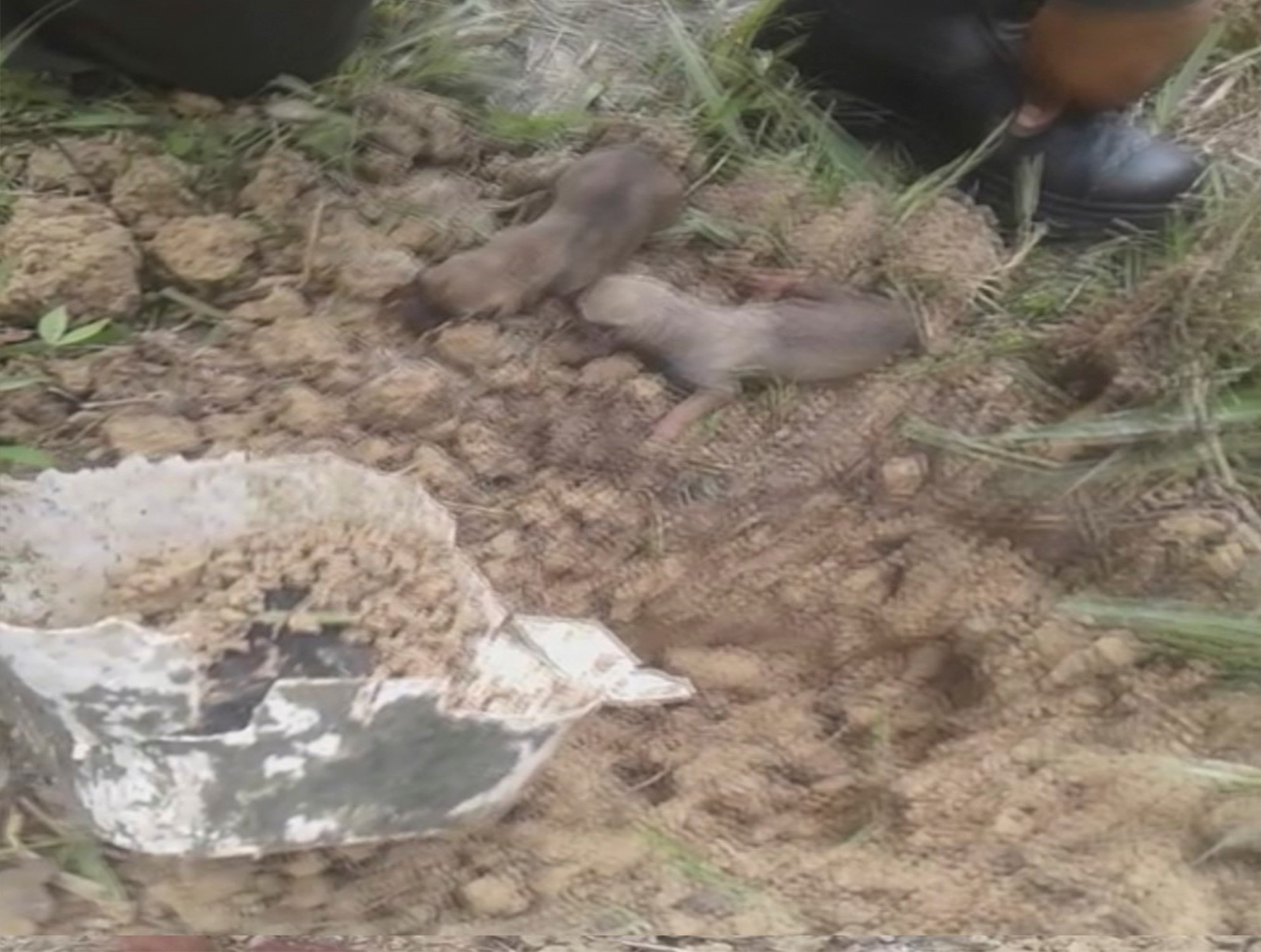 Los uniformados al llegar al lugar, ubican el sitio exacto donde se ve removida la tierra y de donde provenían los aullidos; al escavar encontraron un recipiente plástico y en su interior tres pequeños perritos recién nacidos, los cuales se estaban sofocando, pero gracias a una burbuja de aire que se formó por la dimensión del recipiente lograron mantenerse con vida.