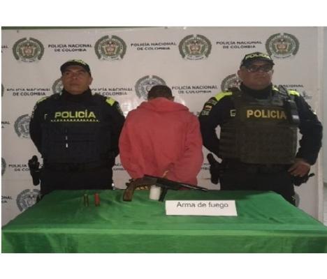 El caso se presentó en el barrio Mirador, donde una ciudadana manifiesta que se está presentando una riña y en el sitio hay un hombre con un arma de fuego. De inmediato los uniformados se dirigen al lugar, donde observan al ciudadano y al solicitarle un registro a persona, le hallan en su poder un arma de fuego artesanal con dos cartuchos.