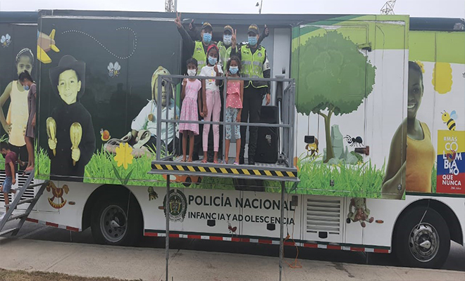 En el marco del Plan Caribe 2021 las unidades de la seccional de protección a la infancia y la adolescencia, reciben al bus interactivo de la Policía de infancia, en donde vienen realizando actividades con nuestros niños, niñas y adolescentes con el fin de que interactúen con el mismo y se realicen actividades enfocadas a la prevención de cualquier delito que atente contra la integridad de nuestros niños.