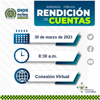 Con el fin de dar a conocer todas las gestiones realizadas en materia de seguridad operacional y prevención; así como la misión institucional durante la vigencia del año 2022, el señor Coronel Edwin Maisleder Urrego Pedraza, Comandante del Departamento de Policía Cundinamarca, extiende la invitación a la comunidad en general, para que asista y participe en el desarrollo de este evento, teniendo en cuenta que la opinión de la ciudadanía es de gran importancia para mejorar y fortalecer el servicio de Policía.