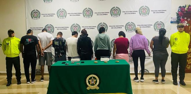 Mediante la realización de diez diligencias de allanamiento y registro en diferentes barrios de la ciudad de Armenia, se logra la captura de doce personas por orden judicial, 01 captura en flagrancia, la incautación de 06 celulares, 650 dosis de cocaína y 61 dosis de marihuana.