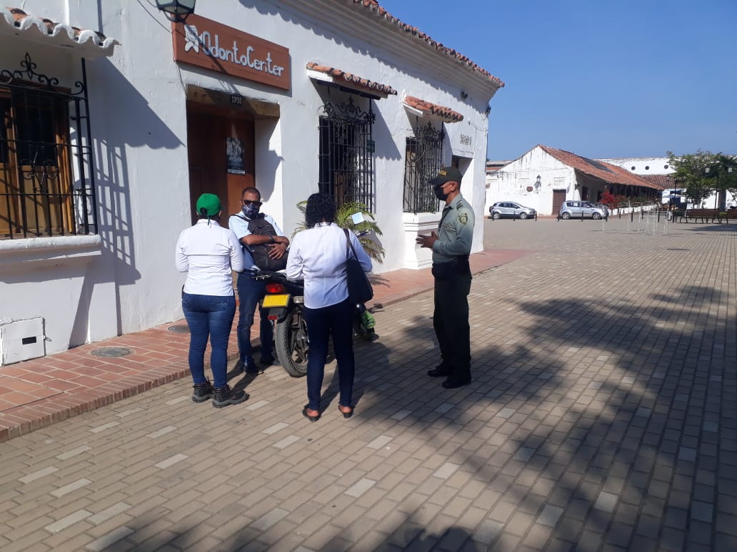 “La Policía Nacional como garantes de la vida y honra de todas las personas, viene insistiéndole a la ciudadanía para que no se descuiden y continúen acatando responsablemente las medidas de bioseguridad, para prevenir el Covid-19; por eso, con nuestras especialidades del servicio de policía hemos focalizado ciertos lugares de donde posiblemente existan riesgos latentes de contagio y estamos llegando con actividades preventivas, para que no se les olvide de que el virus no se ha ido y no se corra el riesgo de un contagio masivo en el Departamento”, expresó el coronel Tahir Rivera Suescún, comandante del Departamento de Policía Bolívar.