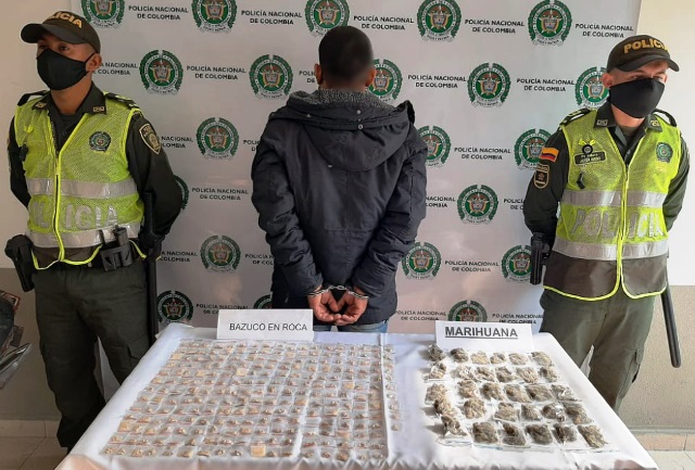 La actividad operativa se desarrolló en la carrera segunda con calle 15 barrio el Progreso municipio de La Virginia Risaralda, donde fue capturado un hombre de 32 años, natural de Pereira Risaralda, quien deambulaba por el sector, y al realizarle un registro al mismo, son encontrados en su poder 140 gramos de bazuco y 150 gramos de marihuana, los cuales se encontraban listos para ser comercializados.